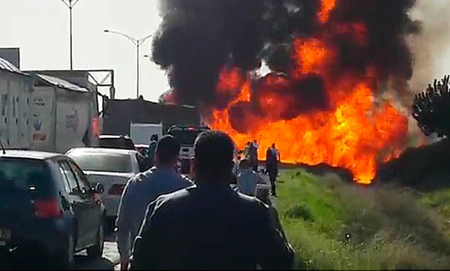 ממד"א נמסר כי מיקום התאונה המדויק הוא בחיבור בין כביש 1 לכביש 6. "מדובר בתאונת דרכים בין משאית שהובילה חומרים מסוכנים ועולה באש, לבין משאית שהובילה כלי רכב והתהפכה".
