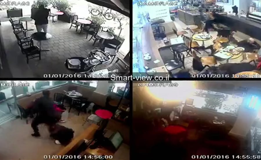 צפו: הירי של המחבל והפאניקה של העוברים ושבים (צילום: מצלמות אבטחה)