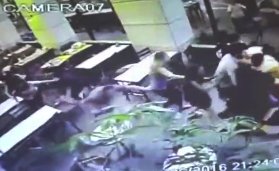 מצלמות האבטחה במסעדה תיעדו את רגעי הבהלה, בשניות הראשונות ניתן לראות את עשרות הסועדים יושבים ברוגע, אך ברגע אחד הכל משתנה - ועשרות בני אדם נראים יוצאים בריצה מהמסעדה ומחפשים מקום מסתור מאש התופת של המחבלים.