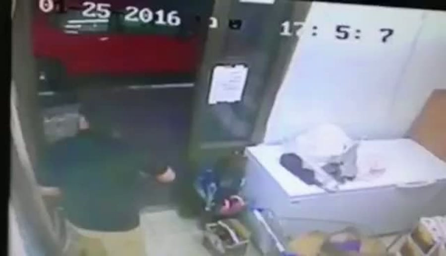 נטרול המחבלים עם עגלת הסופר (צילום: מצלמת אבטחה)