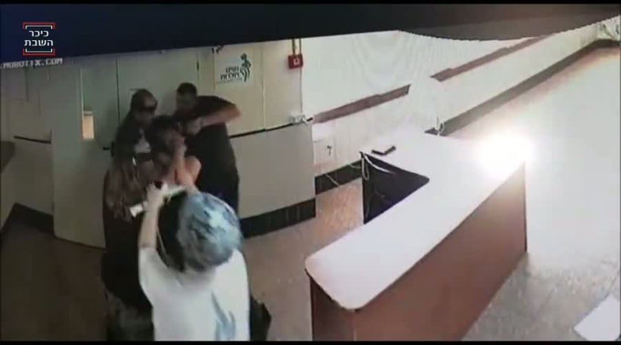 בשלב זה החלו האב והבן להכות את המאבטח בכל חלקי גופו, תוך שהם פוצעים אותו וגורמים לו חבלות קשות בכל חלקי גופו.