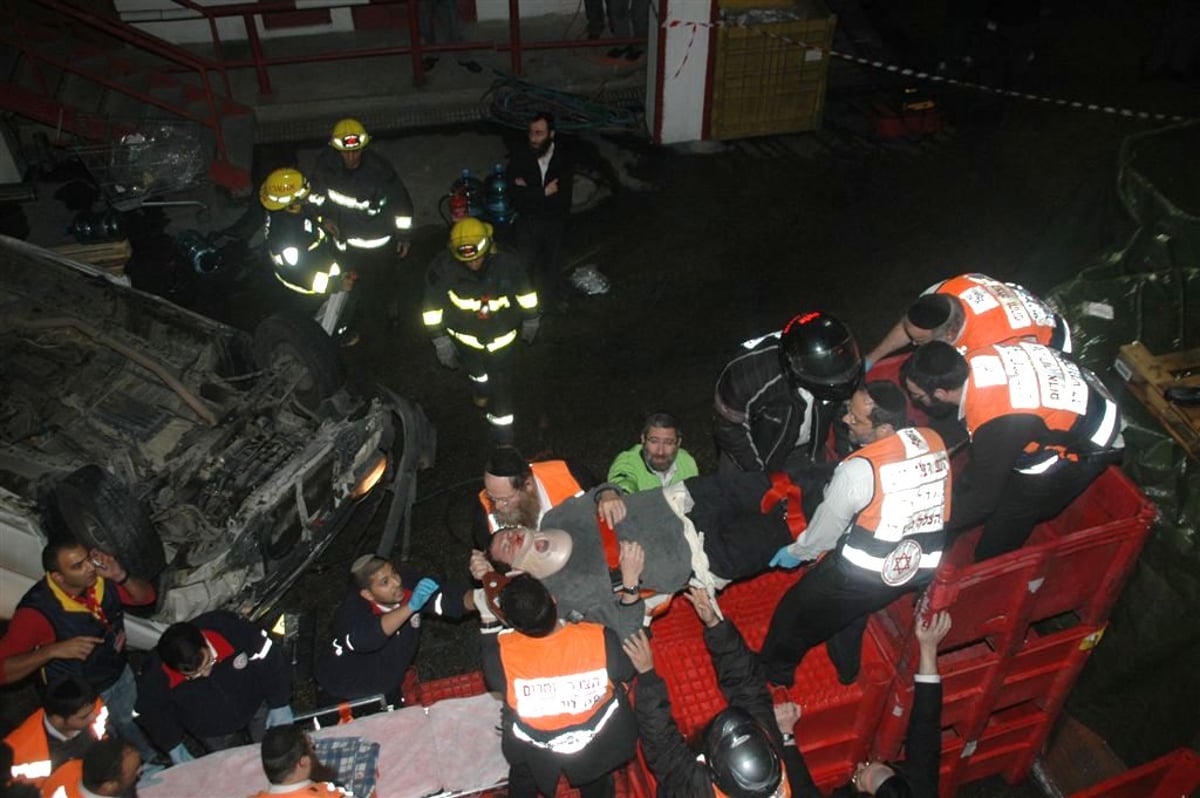 המדובר ברכב השייך למשפחת הרב סניור מבני ברק, כאשר ברכב היו באותו זמן שלושה נוסעים. כוחות ההצלה הרבים שחשו למקום, מצאו בתוך הרכב שני פצועים שנכלדו בפנים, כאשר פצוע נוסף היה מוטל בסמוך, לאחר שעף מהרכב במהלך הנפילה. ככל הנראה הוא סובל מפציעת גב.