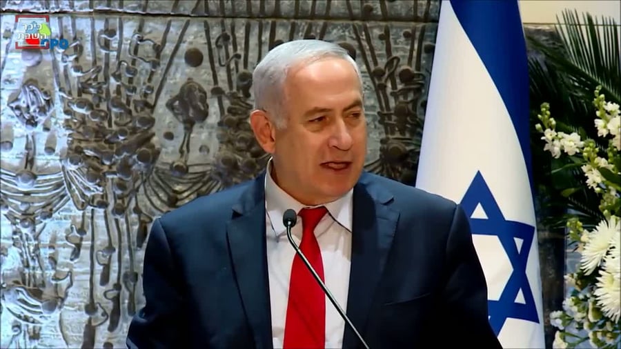 ראש הממשלה בנימין נתניהו נאם אמש (רביעי) באירוע מצטייני המוסד בבית הנשיא ראובן ריבלין ובדבריו קרא לפלסטינים לפעול למען שלום ולא למען הקצנה.