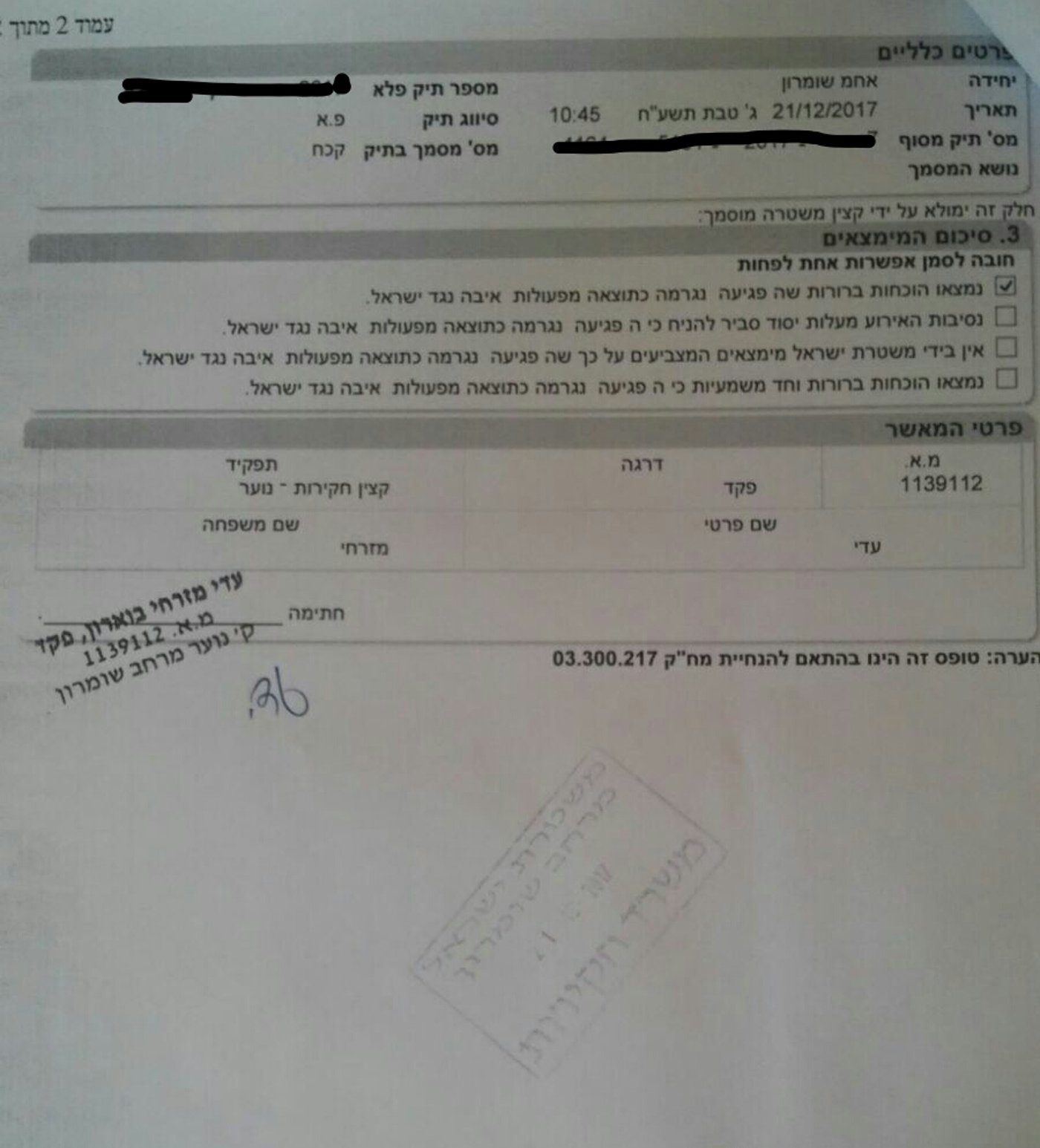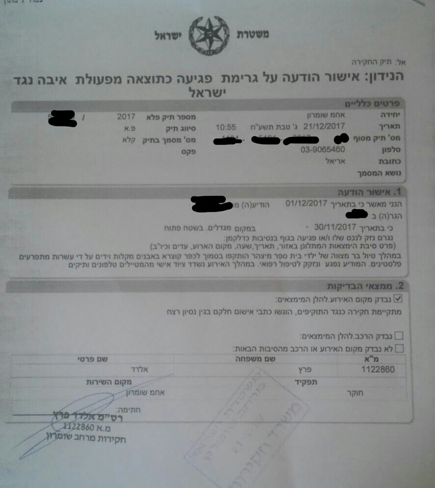 משטרת ישראל אישרה כי הילדים שטיילו סמוך ליישוב מגדלים והותקפו על ידי עשרות פורעים ערביים הינם נפגעי פעולות איבה. במסמכי האישורים שהוציאה המשטרה נכתב כי "נמצאו הוכחות ברורות שהפגיעה נגרמה מפעולת איבה נגד ישראל".