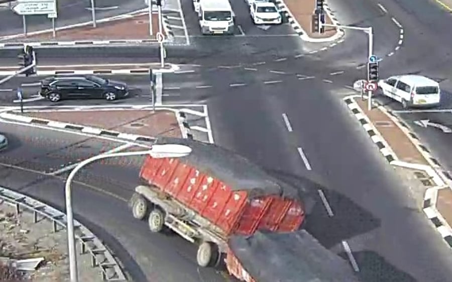 התהפכות משאית הבוקר (שלישי) בצומת 'כפר סבא מזרח', נקלטה במצלמות מרכז ניהול התנועה הלאומי של נתיבי ישראל.
