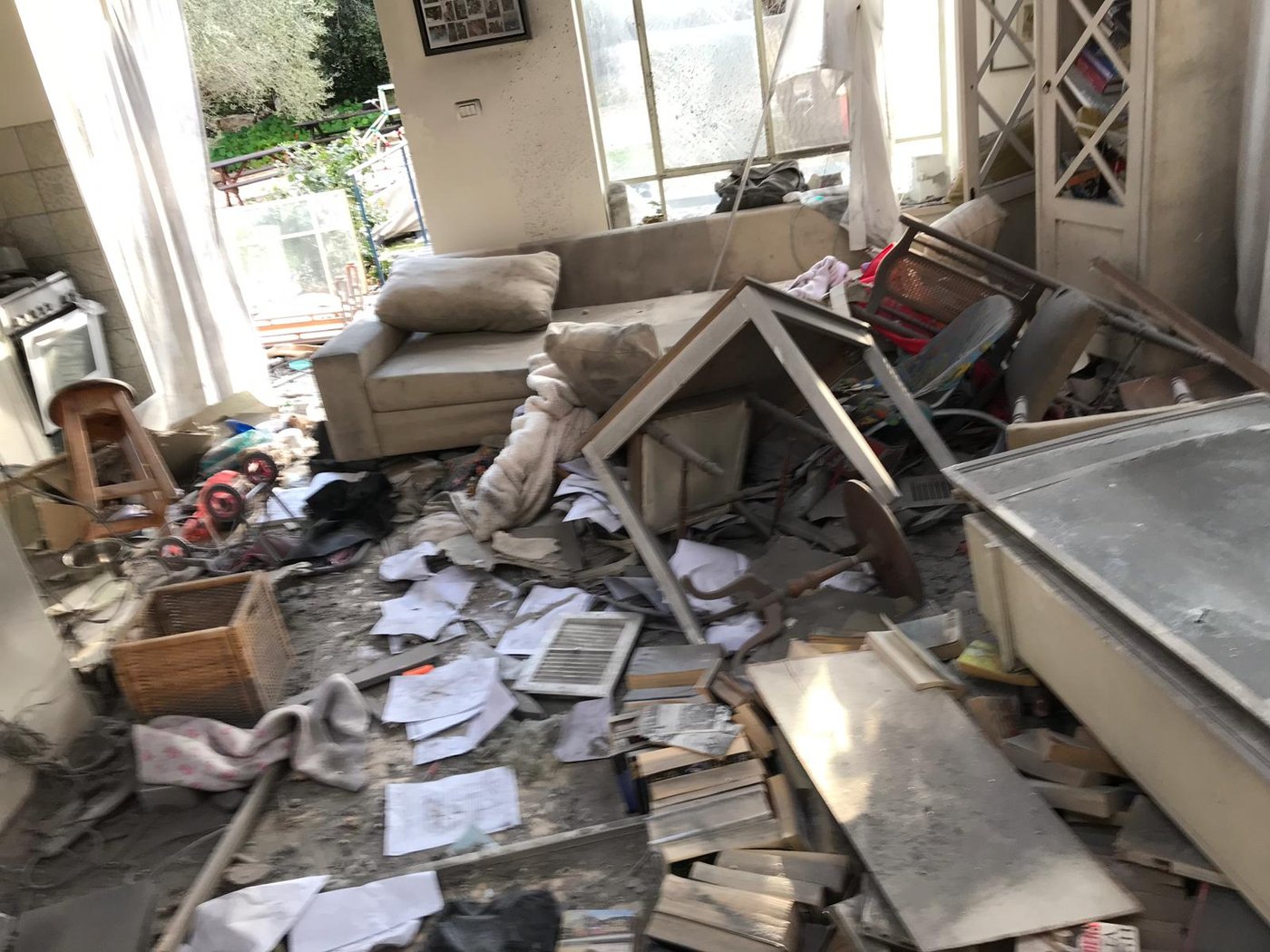 תיעוד: ההרס הרב בתוך הבית שספג רקטה
