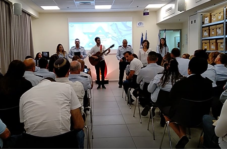 יצחק קליינמן, בן שירות אזרחי במינהל טכנולוגיות של שירות בתי הסוהר, באמירת תפילה "קל מלא רחמים" ושירה בליווי גיטרה בטקס שהתקיים לרגל יום הזיכרון לחללים. צפו (בארץ)