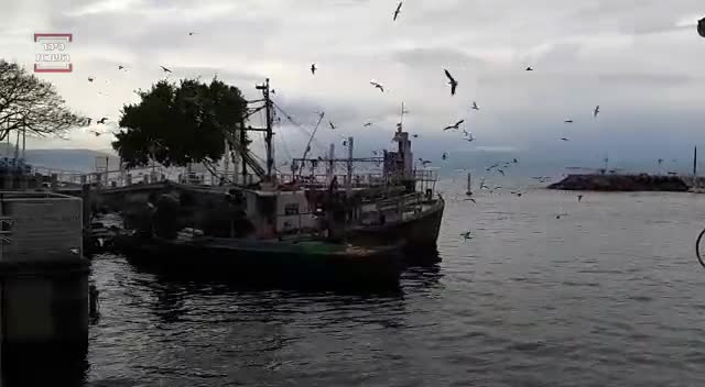 בתיעוד, תוכלו לראות את נמל עין גב היום, לפני השקיעה, מעל ענני גשם, אך לא ירד גשם היום.