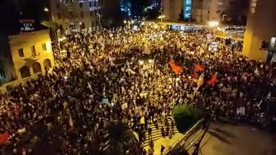 אלפים מפגינים הערב (מוצאי שבת) נגד ראש הממשלה בנימין נתניהו במוקדים שונים ברחבי הארץ, בעיקר מול מעון ראש הממשלה ברחוב בלפור בירושלים.