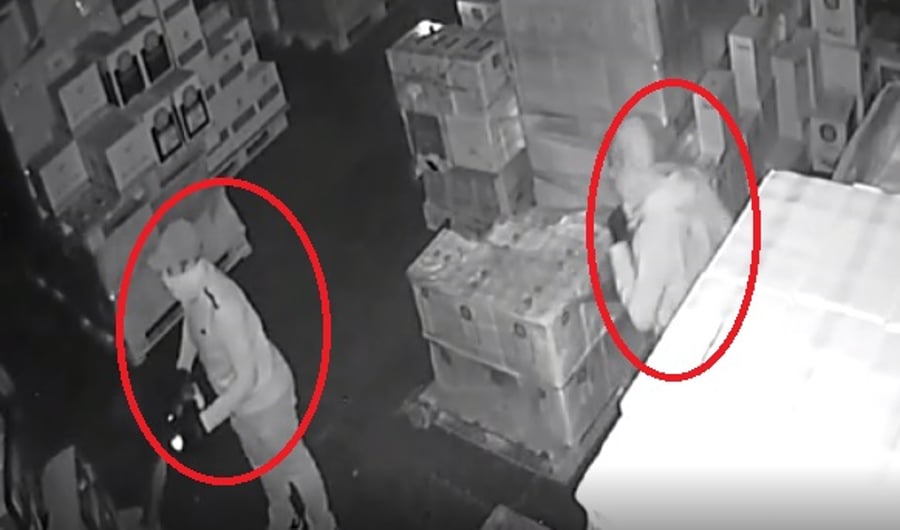שניים מחברי הכנופיה הגיעו למחסן ונטרלו תחילה את מערכת האזעקה והמצלמות, אך לא הבחינו במצלמה נוספת שתיעדה את כל מעשיהם בתוך המחסן.