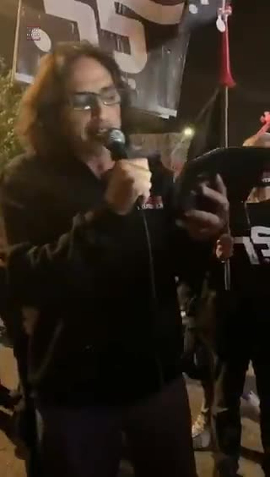 בסרטון, שעורר סערה ברשת, נצפה המפגין אומר: "בשנות ה-30 היה צורר ליהודים, הוא היה בגרמניה - והוא התנהג בדיוק כמוך. הוא שיסה, הסית והרס. אין מחילה למושחת, אין מחילה להרס וההתעמרות בנו האזרחים".