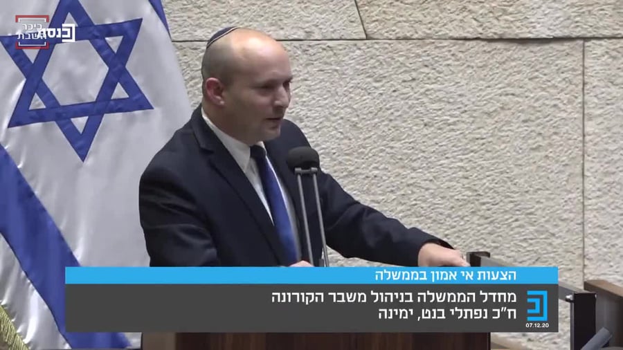 במליאת הכנסת התכנסו הערב (שני), כדי לדון בהצעות אי האמון כנגד הממשלה. במהלך הדיון עלה לנאום יו"ר ימינה חבר הכנסת נפתלי בנט שתקף בחריפות את התנהלות הממשלה עם משבר הקורונה.