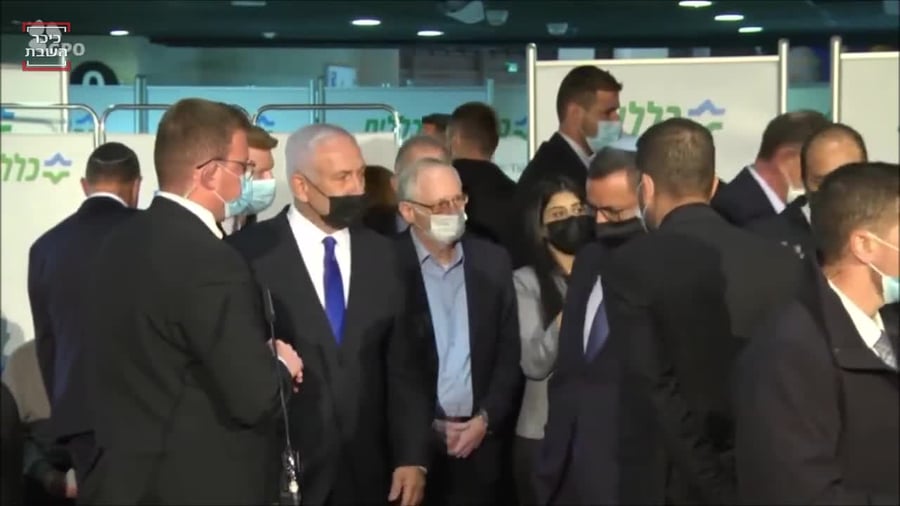 ראש הממשלה בנימין נתניהו ביקר הערב (שלישי) במתחם חיסוני הקורונה בהיכל ארנה בירושלים יחד עם ראש העיר ירושלים משה ליאון ושר הבריאות יולי אדלשטיין.