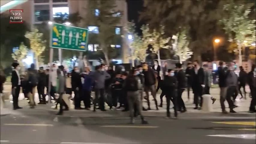 במקביל, המפגינים ממשיכים למחות גם בצומת שמואל הנביא, כאשר בין המשתתפים, יש גם נוער חרדי. שוטרים שנמצאים במקום מפנים את המפגינים למדרכה.