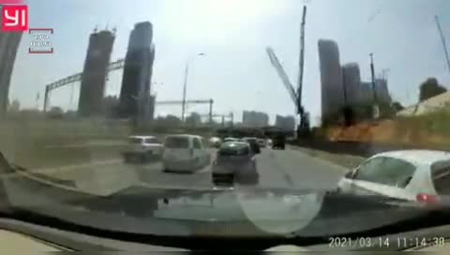 בתיעוד שפורסם היום ממצלמת הרכב, נראה מטען הברזלים הכבד עף בעוצמה על הכביש ופוגע ברכב נוסע, שם היה סטודנט בן 24 שכאמור נפצע באורח קל ופונה לבית החולים.