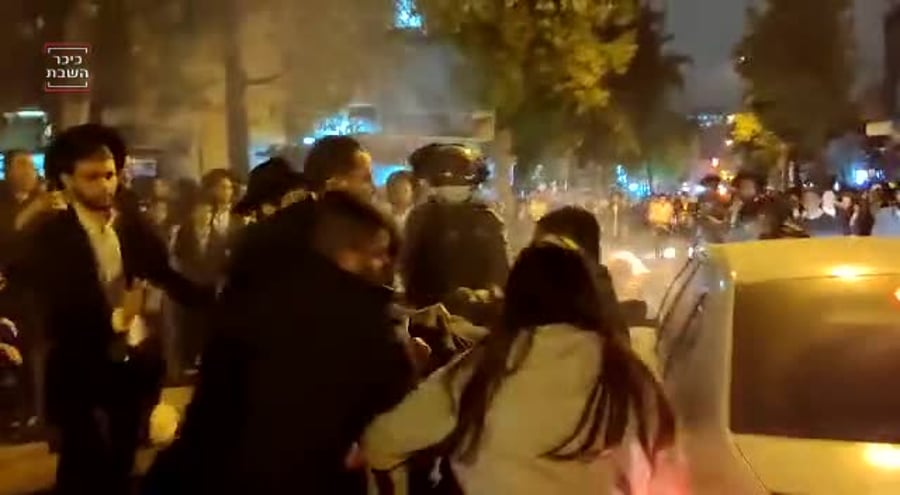 ברחוב צפניה, תועד שוטר יס"מ במהלך ההפגנה נוגח באלימות בבחור חרדי.