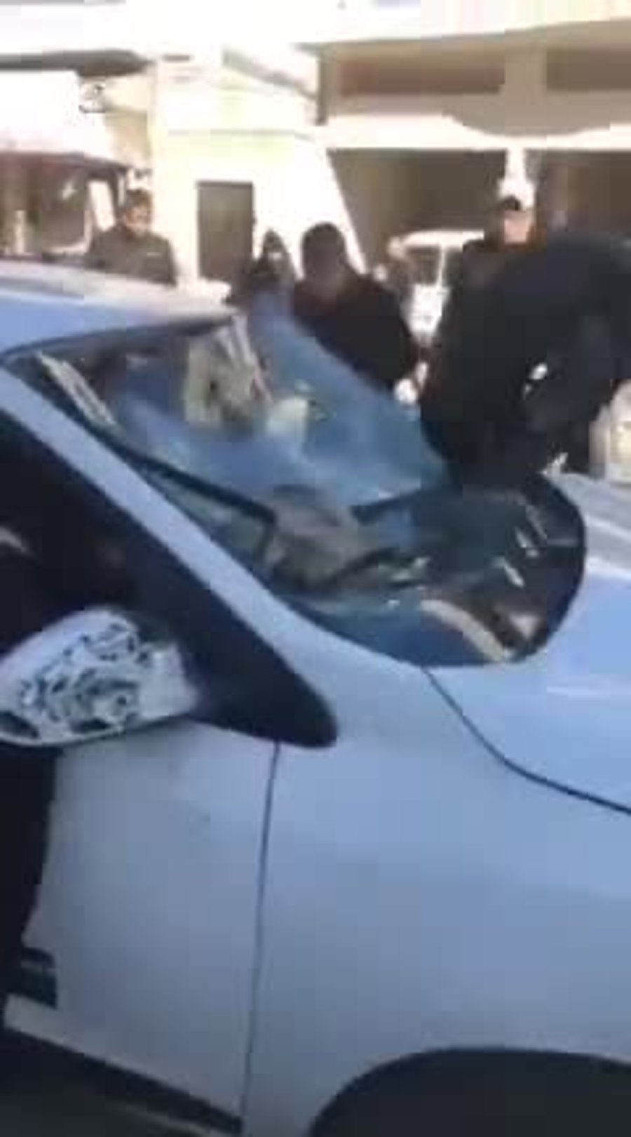 הנהג הישראלי נכנס לאזור מסיבה עסקית, כאשר לפתע צבאו על רכבו עשרות צעירים והחלו לגרום לו נזק כבד. בתיעוד שצילם עובר אורח נראה צמיג הנזרק אל הרכב ונשמעים קולות של פלסטינים "לשרוף את הרכב".