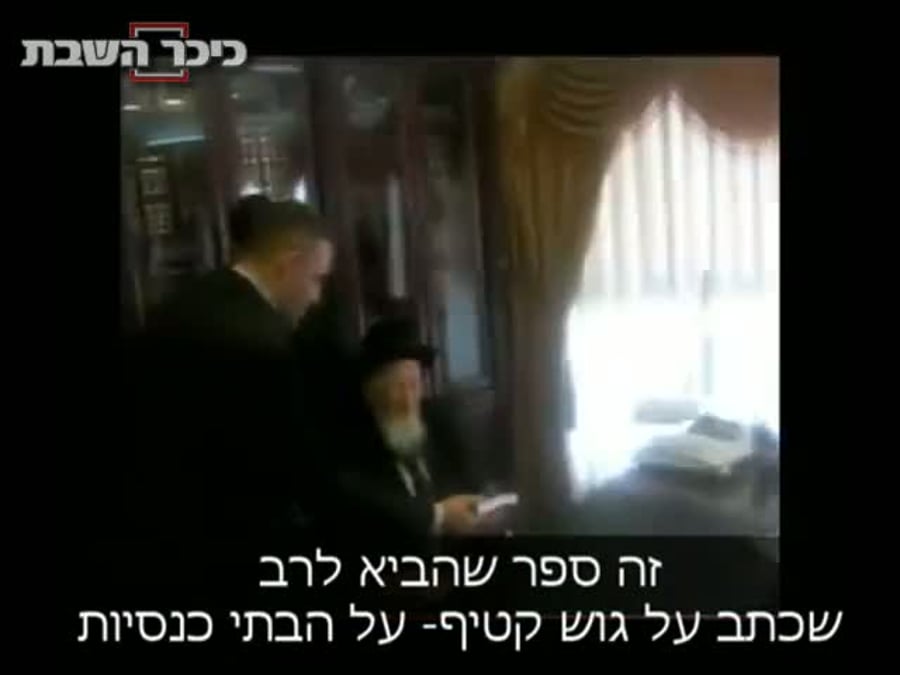 "זה ספר שהוא הביא לרב, העוסק בבתי-הכנסיות של גוש-קטיף", כך הציג הרב שמואל זעפרני, יד ימינו של רבי מרדכי אליהו, את עורך-הדין שניהל את המאבק בשיתוף עם גבאי בתי-הכנסת.