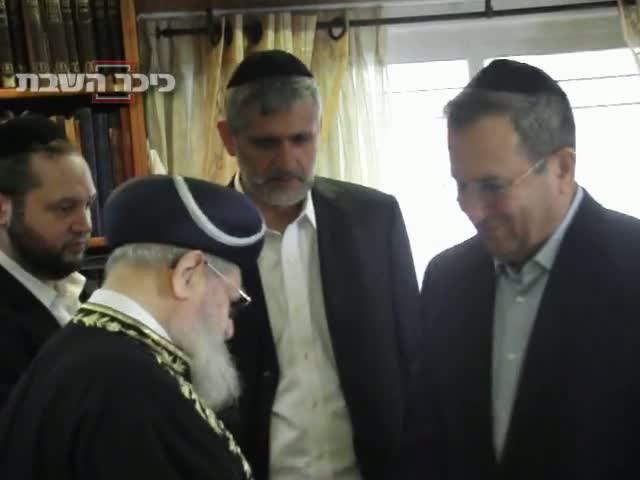 בשעות הצהריים הגיע שר הביטחון אהוד ברק הגיע למשרד הפנים, שם פגש את יו"ר ש"ס השר אלי שי לארוחת צהריים. משם, יצאו השניים לרחוב הקבלן 45 - לפגישה מיוחדת עם נשיא מועצת חכמי התורה, מרן הרב עובדיה יוסף.
