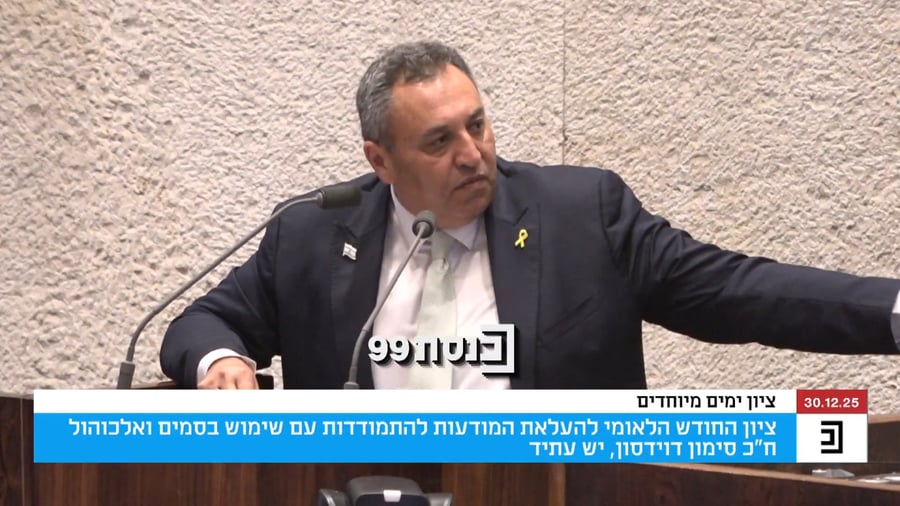 במליאת הכנסת ציינו היום את החודש הלאומי להעלאת המודעות להתמודדות עם שימוש בסמים ואלכוהול. בין היתר נשא דברים בדיון חבר הכנסת סימון דוידסון מיש עתיד. הוא שיתף בסיפור אישי מטלטל שחווה בצעירותו.