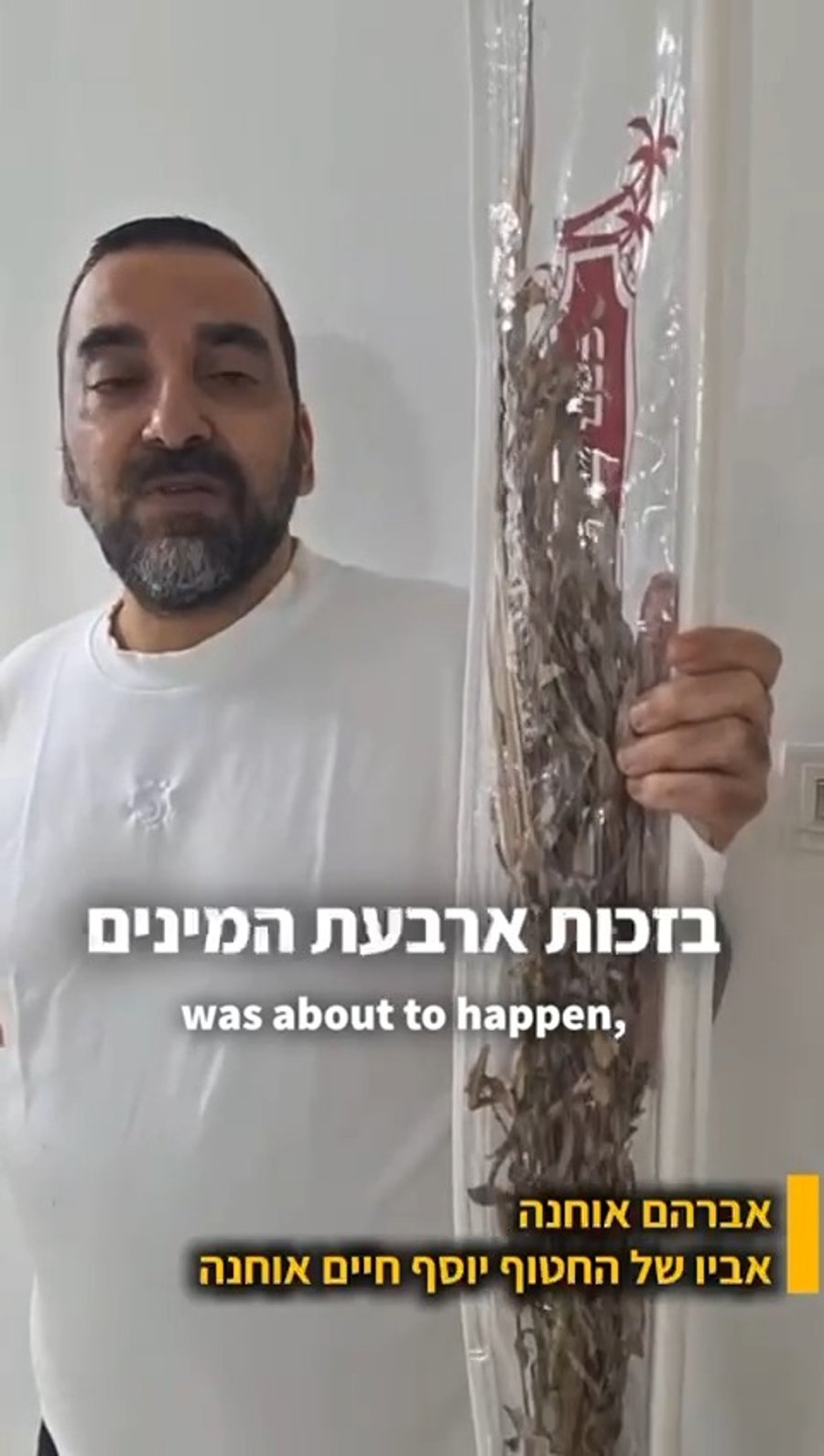 רגע לפני חג הסוכות תשפ"ו: אברהם אוחנה, אביו של החטוף יוסף חיים אוחנה, שעדיין נמצא בשבי בעזה, חושף את הברכה של בנו על ארבעת המינים, יומיים לפני שנחטף, ומספר ששמר עליהם מאז.