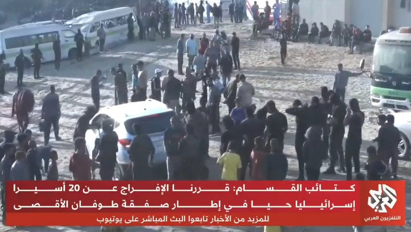 10:13: ערוץ א-שרק הסעודי: החלה הפעימה השנייה של מסירת החטופים.