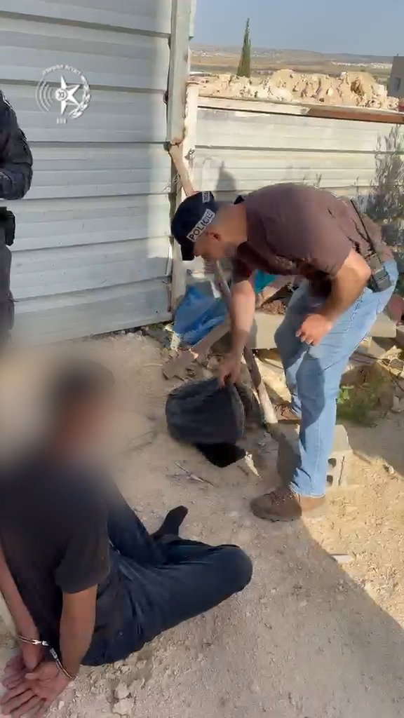אלא שהערנות המבצעית של הלוחמים בשטח הייתה גבוהה. הכוחות סגרו על המקום באופן מיידי ועצרו את החשוד עוד בטרם הספיק להתרחק מהזירה. בתיעוד ויזואלי מהזירה ניתן לראות את רגעי הדרמה: השוטרים ניגשים לשקית האשפה השחורה שמונחת על קרקע חולית, בסמוך למבנה ארעי המוקף פחי איסכורית ובלוקים.