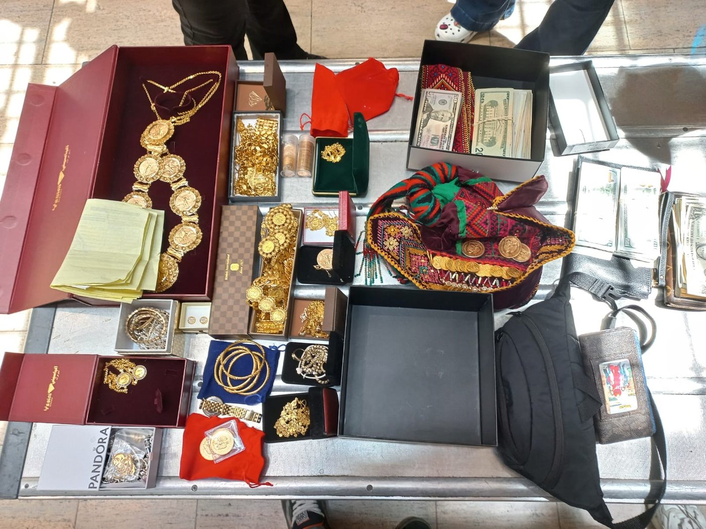 בודקי אולם נוסעים מכס נתב"ג עצרו את האישה כשבמזוודתה כ-6.5 ק"ג של תכשיטי זהב ו-36,000$ שלא הוצהר עליהם כמתחייב בחוק.