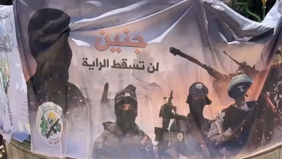 בנוסף, נתלתה בהר הבית כרזה של חמאס בשבח לוחמי גדודי עז א-דין אל-קסאם, הזרוע הצבאית של ארגון הטרור חמאס.
