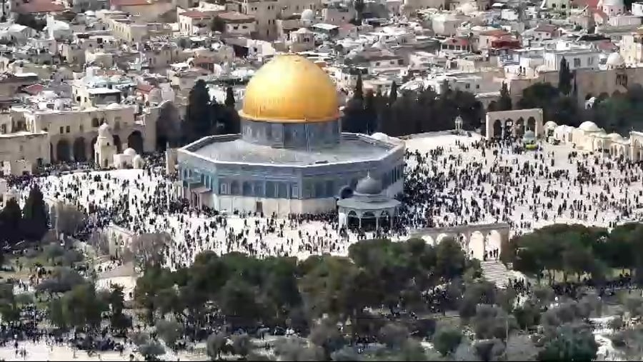 לפני כשעה וחצי הסתיימה תפילת הצהריים בהר הבית ביום שישי השלישי של חודש הרמדאן, בהשתתפות עשרות אלפי מתפללים, ללא חריג.