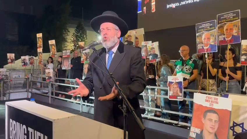 ״אין ימין אין שמאל, אין דתיים אין מסורתיים, חילונים - כולנו רוצים לראות את כולם בבית. הם מהבתים נחטפו, אני לא אומר שבויים - אלו חטופים שנלקחו מהבית, חטופים שנלקחו בפיג'מה, בכפכפים בתחושה מינימלית של חיים מהבית שלהם וחובתינו לומר והבאתי אתכם אל הארץ, את אלו שחיים אתנו ואת אלו שלצערי כבר לא בחיים אך מחובתינו להביא לקבר ישראל", אמר בין היתר.