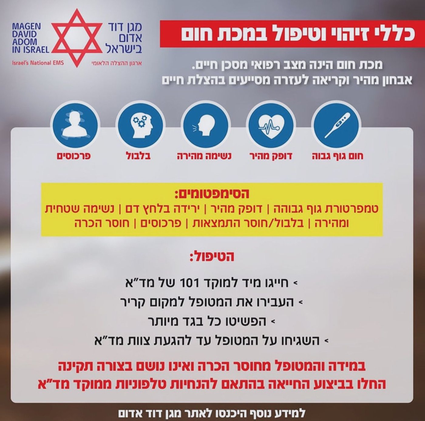 במד"א מזכירים לציבור להיזהר ממזג האוויר החריג המאופיין בלחות נמוכה וממליצים לשתות מים לאורך היום.