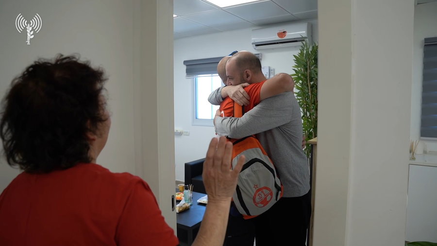 במחנה רעים ליד עזה, בנקודת הקליטה הראשונית, הוא נפגש עם אמו רותי ועם אחיו עמוס. משם המריא בהמשך לבית החולים איכילוב, שם מאושפז אביו שעבר ניתוח כליה לפני זמן מה.