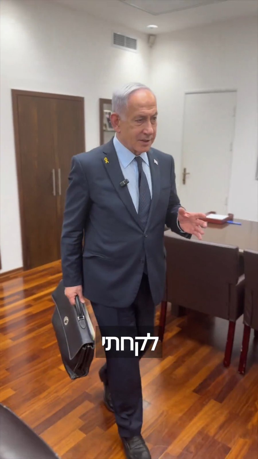 "אנחנו עכשיו בשעה רבע לתשע בקריה", פתח נתניהו ותיאר, כשבידיו תיק, "אחרי יום עמוס, ואני הולך מכאן לפגוש את שגריר ארצות הברית. אנחנו עושים את כל המאמצים, כולל במהלך היום, להביא לשחרור חטופנו ולהשיג את יעדי המלחמה שלנו. אנחנו לא מוותרים על אף אחד".