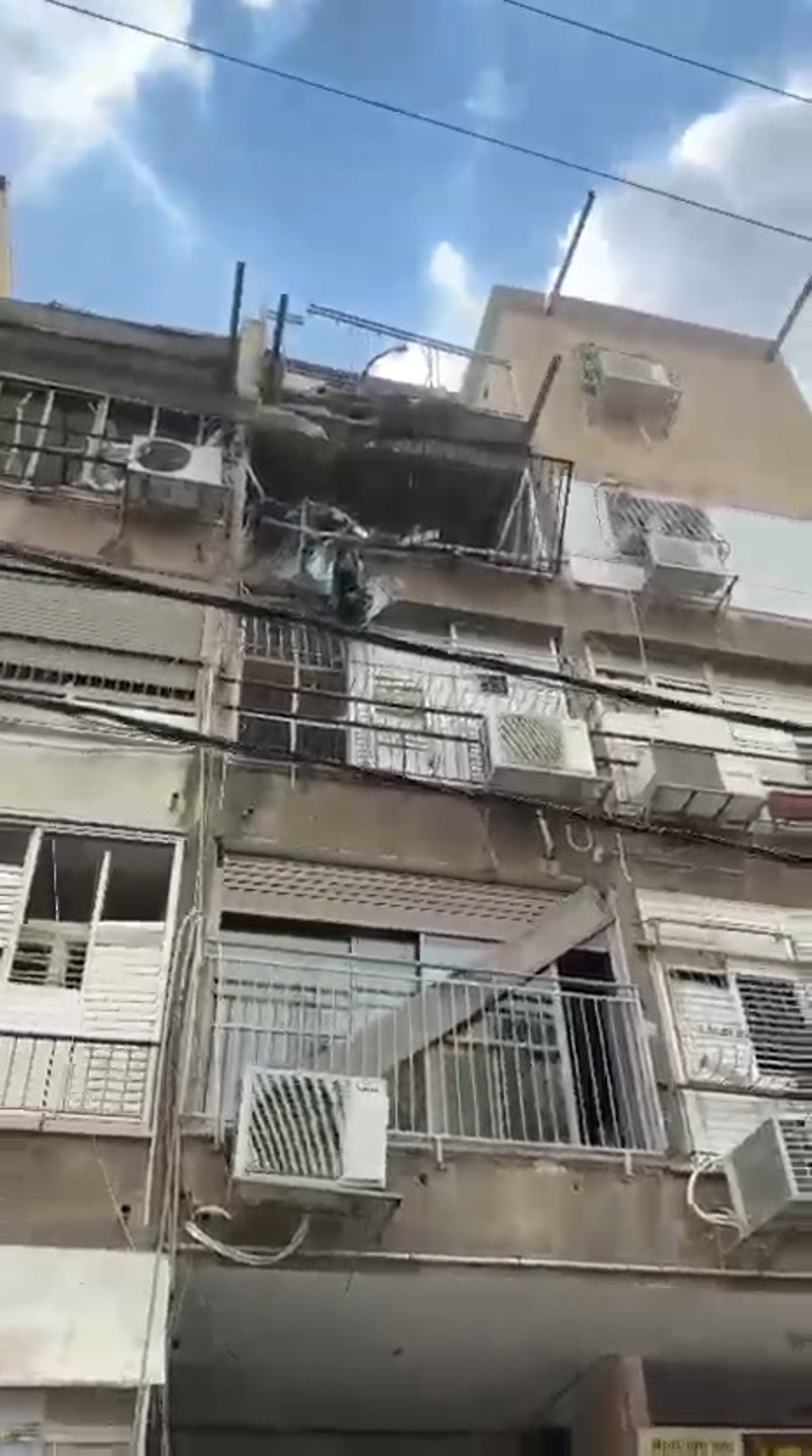 במטח למרכז הארץ ספג בניין מגורים בבני ברק פגיעה בקומתו העליונה | בן 60 פונה במצב בינוני לבית החולים איכילוב עם רסיסי זכוכיות בראשו | תיעודים מהזירה (בארץ)