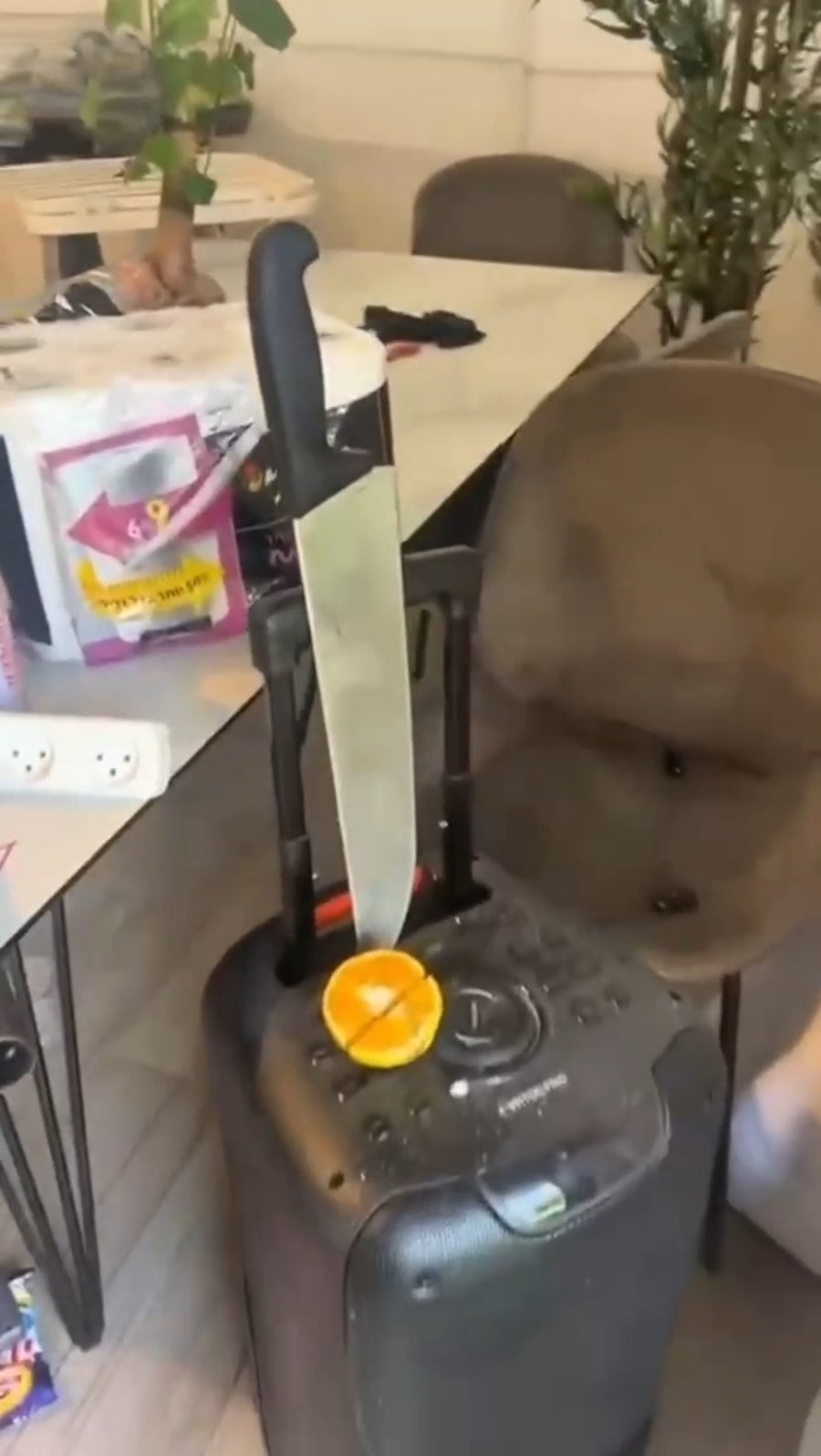 בתיעוד מהבית נראה הבית הפוך כולו, כשחפצים פזורים בכל עבר, ולכלוך דבוק ברהיטים ובספות. נראית גם בוקסה שבה ננעצה להב של סכין גדולה, לצד תפוז פתוח. הפורץ השאיר אחריו לכלוך רב.