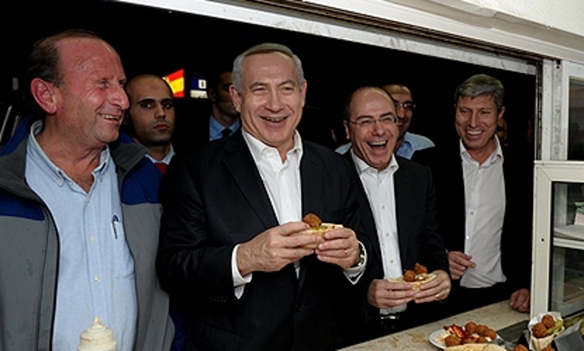 נתניהו לא הסתפק בזה והתיישב לנגב חומוס עם השר לפיתוח הנגב והגליל סילבן שלום כשהוא משוחח עם הקליינטים במקום.