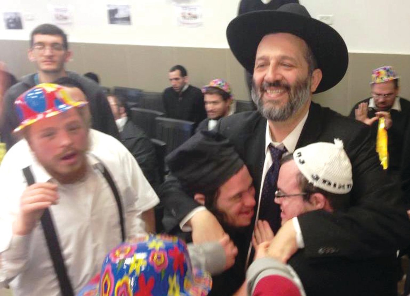 * ובדירה ממול, הגיעו עשרות בחורי ישיבות לשמוח בשמחת הפורים, ביחד עם שר הבינוי והשיכון אריאל אטיאס. הרימו כוסית לחיים עם השר: ראש הלשכה איציק אלחרר, העוזר דניאל גבאי, והדובר אשר גולד.