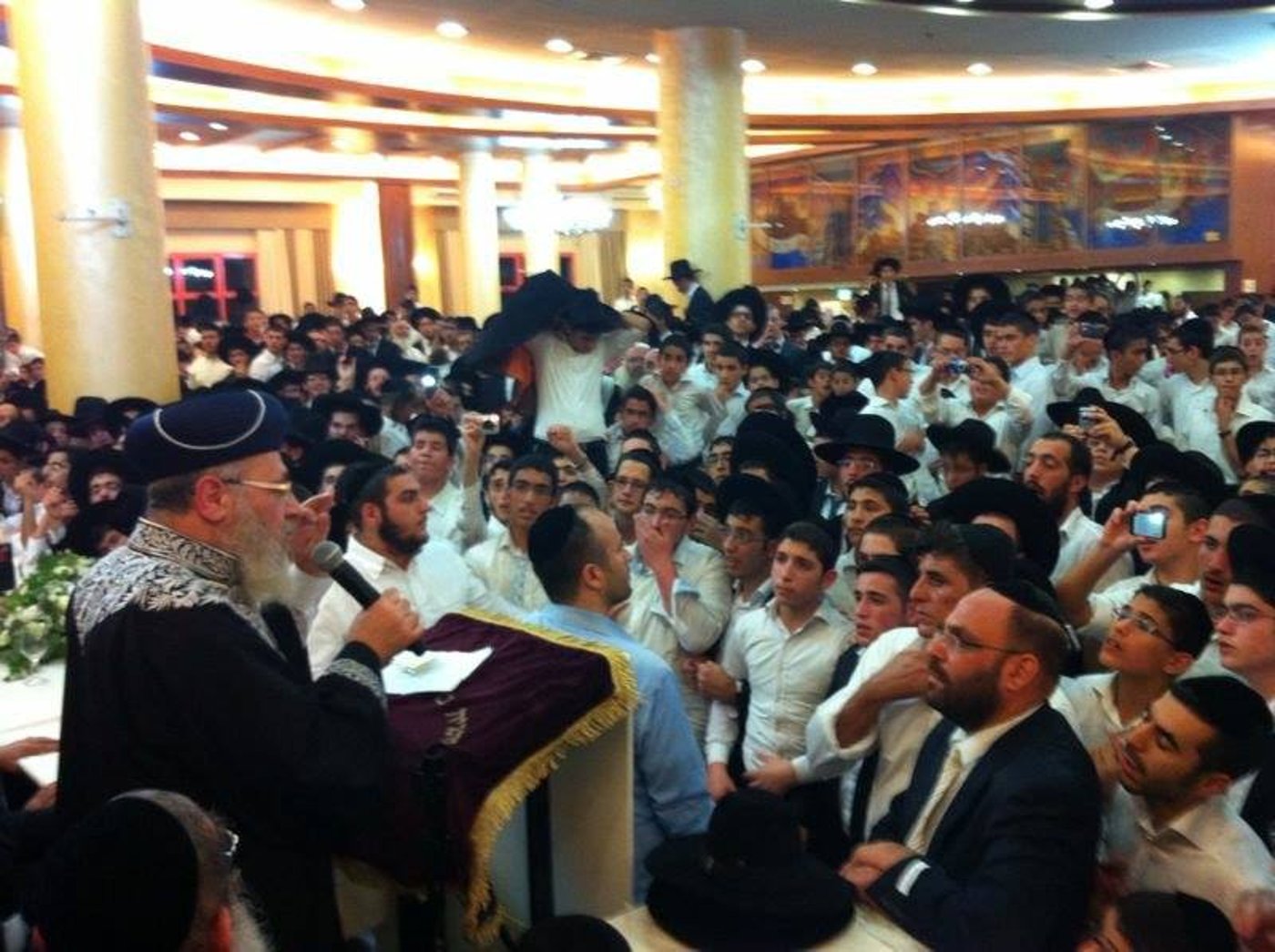 * אלפי אנשים זרמו בהמוניהם אל אולמי ארמונות חן בחול המועד סוכות, בכדי להשתתף בשמחת בית השואבה והקבלת פני רבו. המארגנים שלא צפו את העומס הרב, לא הזמינו מאבטחים. התוצאה: קרוב לאלפיים איש נצמדו לרכבו של הראש"ל הגאון רבי יצחק יוסף, ושרו לו במשך שעה ארוכה. לאחר חצי שעה הוא הצליח לצאת מהרכב ולהגיע לאולם.