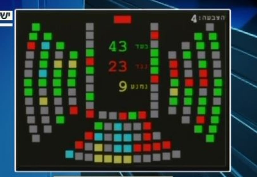 בסופו של דבר, 43 ח"כים תמכו בהצעת החוק, 23 ח"כים התנגדו, תשעה נמנעו ותשעה נכחו במליאה אך לא השתתפו בהצבעה. החוק יועבר לוועדת הכנסת שבה יוכרע איזו וועדה תכין אותו לקריאה ראשונה.