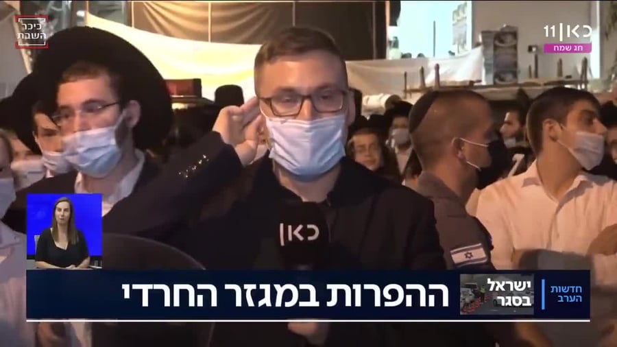 "אבל את יכולה לראות שגם הערב בבני ברק אני והצלם מותקפים, המצלמה רועדת מהדחיפות, זורקים עלינו בקבוקים, באמת שרצינו לדווח על דברים חיוביים. אין פה ניידת אחת אפילו, רק אנשי פיקוח עירוני שמנסים לסייע לנו".