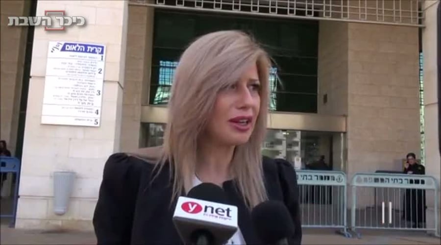 הפרקליטה של החשוד, שירה ניר, מציגה את צילום הגידול בראשו וטוענת כי הוא אוטיסט (צילום: בראל אפרים, ynet)