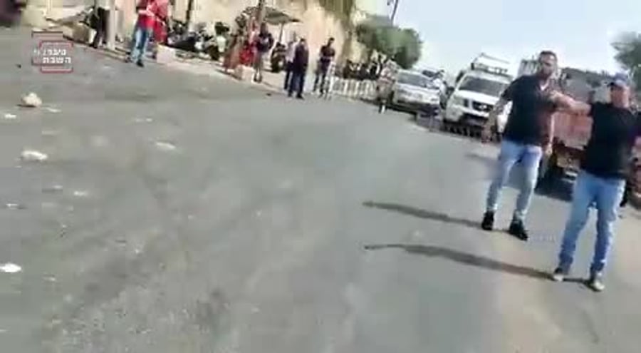 בשלב מסוים נחבל אחד המתלוננים בראשו ואיבד שליטה ברכב. מחמד קבאג'ה, שבאותה עת היה אמור לשהות במעצר בית, יידה אבנים לעבר המתלוננים וסלאימה ריסס גז פלפל לעברם. שוטר שהגיע למקום ירה בנשקו באוויר והפורעים התרחקו.