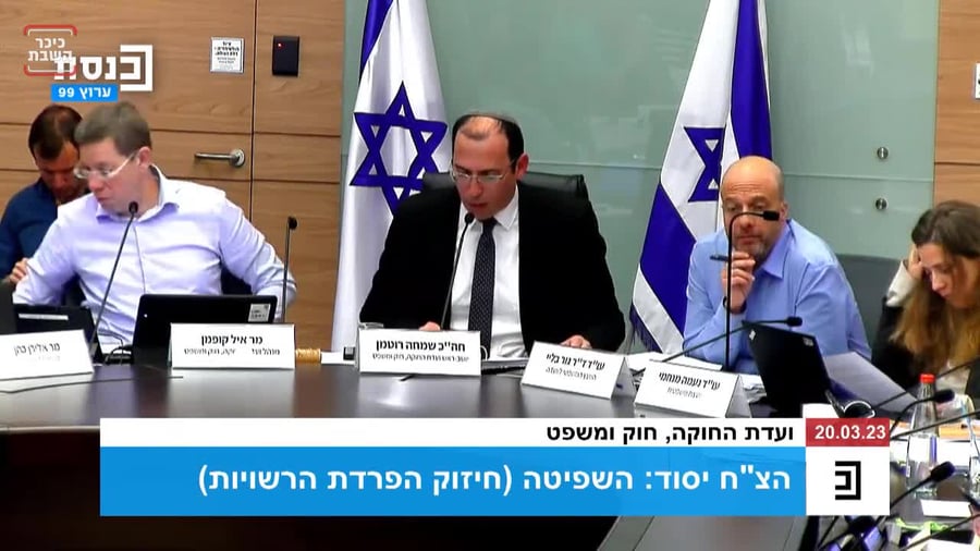 יו"ר ועדת החוקה חה"כ שמחה רוטמן, מי שניצב בראש החץ של החקיקה, הציג הבוקר את הפשרות של הקואליציה ואמר: "אנחנו מקיימים - מתחילים בתיקון מערכת המשפט. הצעד הראשון - משנים את שיטת בחירת השופטים בישראל".
