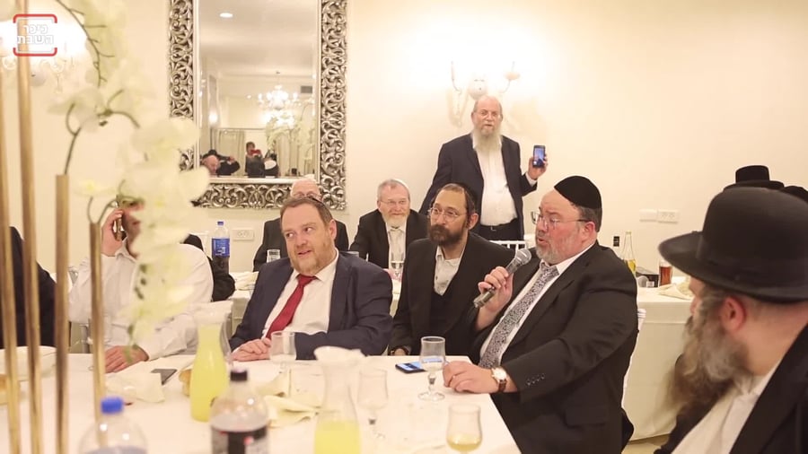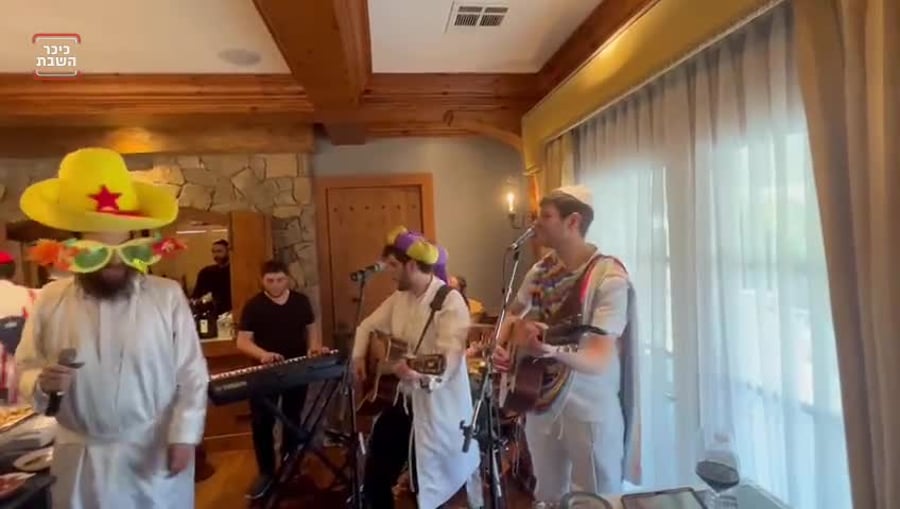 אמן הרגש הזמר מוטי שטיינמץ תועד בשירי רגש במשתה הפורים בביתו של מנכ"ל עיתון 'המבשר' מוישי פרוש.