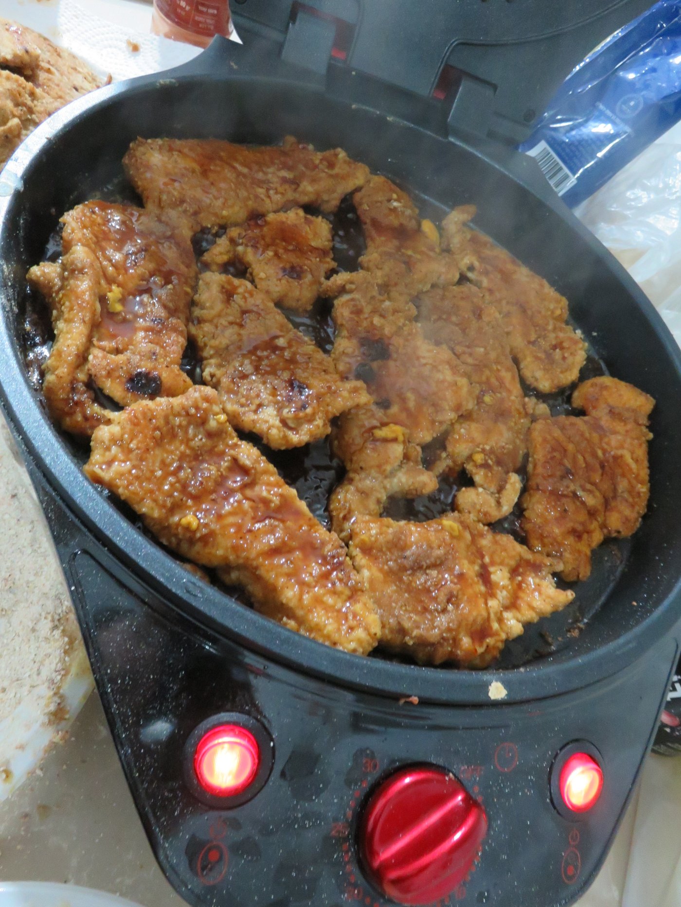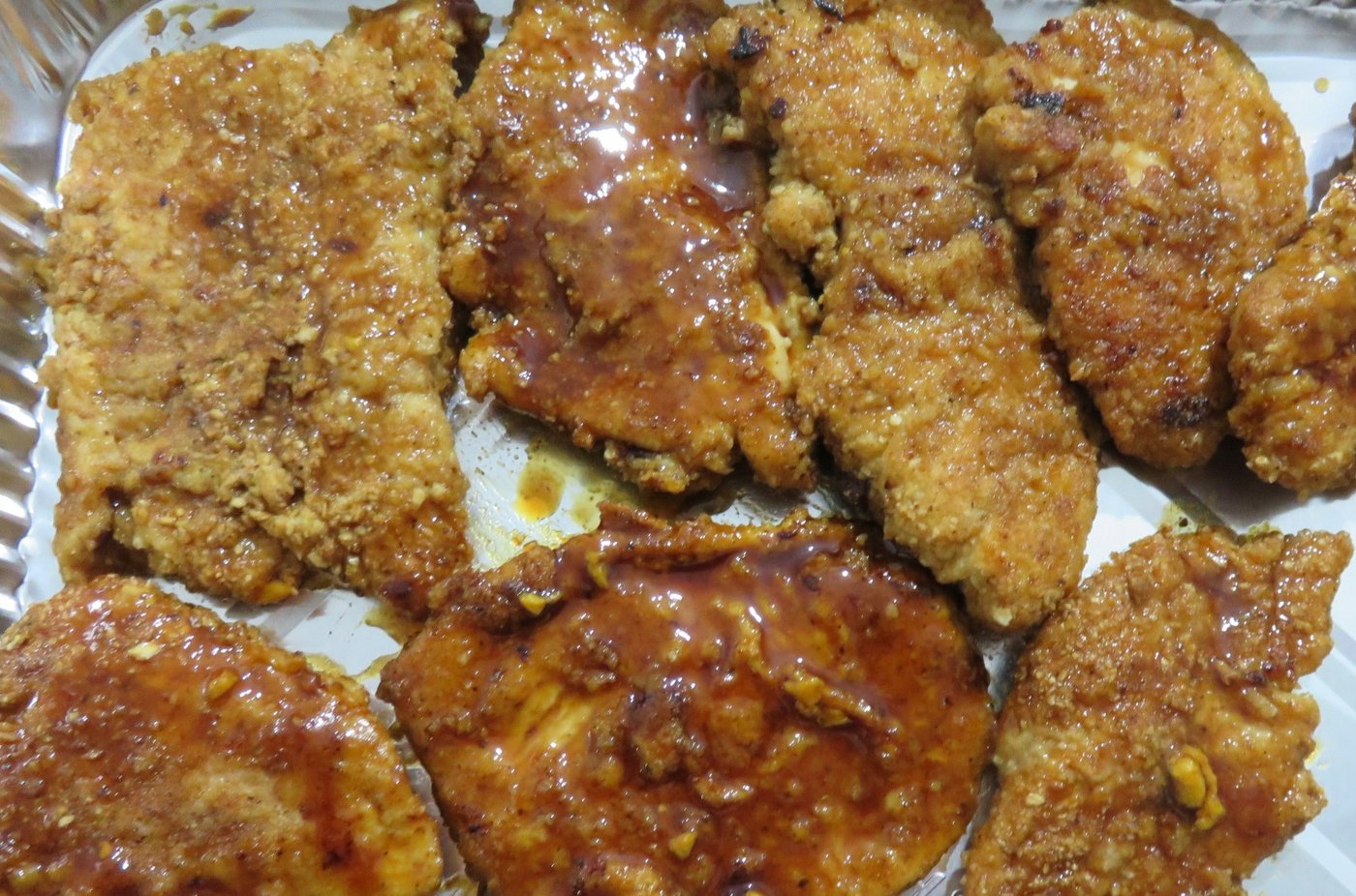 - לאחר שכל השניצלים מטוגנים, ערבבו את מרכיבי הרוטב. טבלו כל שניצל היטב ברוטב. את שאר הרוטב שפכו על השניצלים ואפו למשך 15 דקות בתנור או בשלו שוב את השניצלים עם הרוטב במכשיר הגריל.