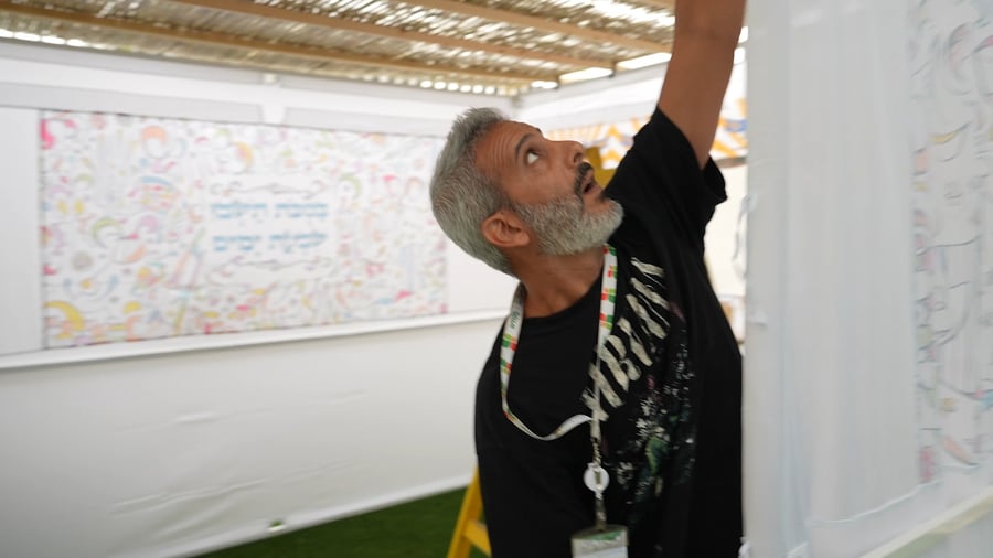 כך נראית ההיערכות לקליטת השבים - ובניית הסוכה עבור השבים - צפו בתיעוד.