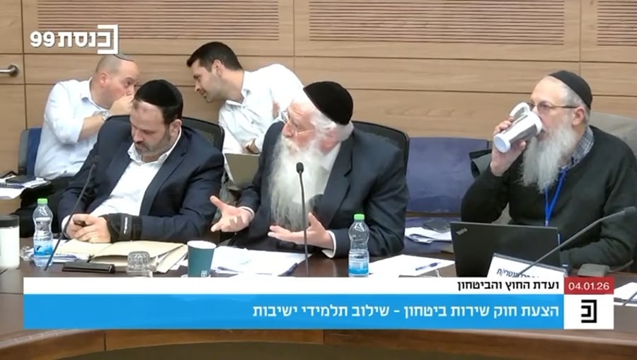 ועדת החוץ והביטחון המשיכה היום (ראשון) את רצף הדיונים בהצעת חוק שירות ביטחון. הדיון היום מתמקד בסעיפים העוסקים בשלילת הטבות אישיות למי שלא התייצב לשירות סדיר, ובמילים אחרות - סנקציות על לומדי התורה, במידה והקולקטיב החרדי לא ימלא את ה"יעדים".
