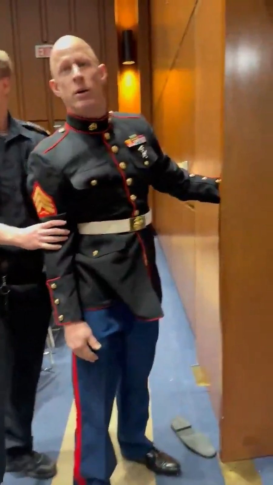 הסנאטור הרפובליקני טים שיהי ממונטנה, המשרת בוועדה ובעברו לוחם ביחידת "אריות הים", התערב באירוע וסייע לשוטרים להשתלט על מקגיניס ולהוציאו מהחדר. שיהי מסר בתגובה לאירוע כי "האדון הזה הגיע לקפיטול במטרה ליצור עימות וקיבל אותו", והוסיף כי פעל כדי לסייע לשוטרים ולהרגיע את הסיטואציה המסוכנת שנוצרה בחדר הדיונים.