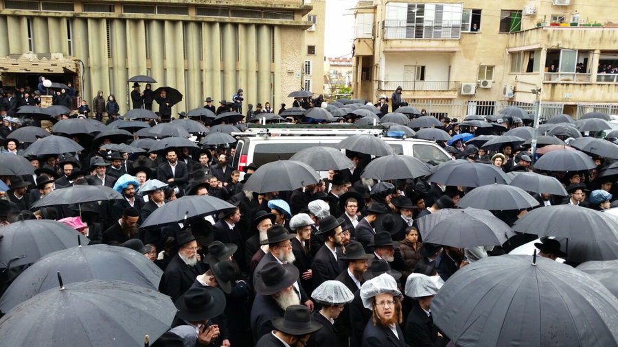 ויהי בנסוע: רבבות משתתפים בשעה זו (ראשון) בבני ברק, בהלווייתו של הגאון רבי חיים שאול גריינמן זצ"ל, שנסתלק ביום שביעי של פסח והוא בן 89. הלוויה מתקיימת תחת גשם שוטף, שאילץ את המשתתפים להשתמש במטריות.